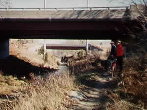Riding the Upper Charles Trail under I-495 in Milford