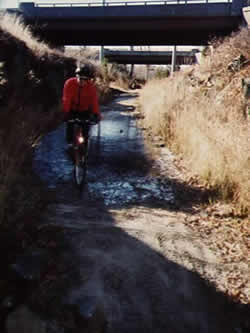 Riding on the embankment of the Upper Charles Trail