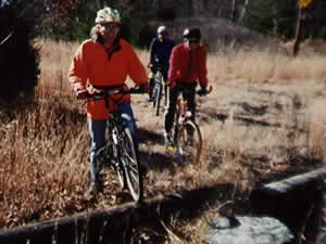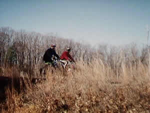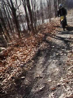 Riding along "single track" on the Upper Charles Trail