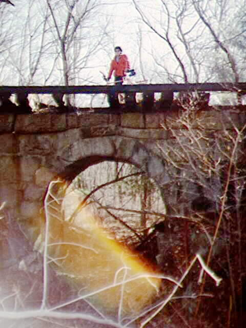 Crossing a bridge over a ravine on the Upper Charles Trail